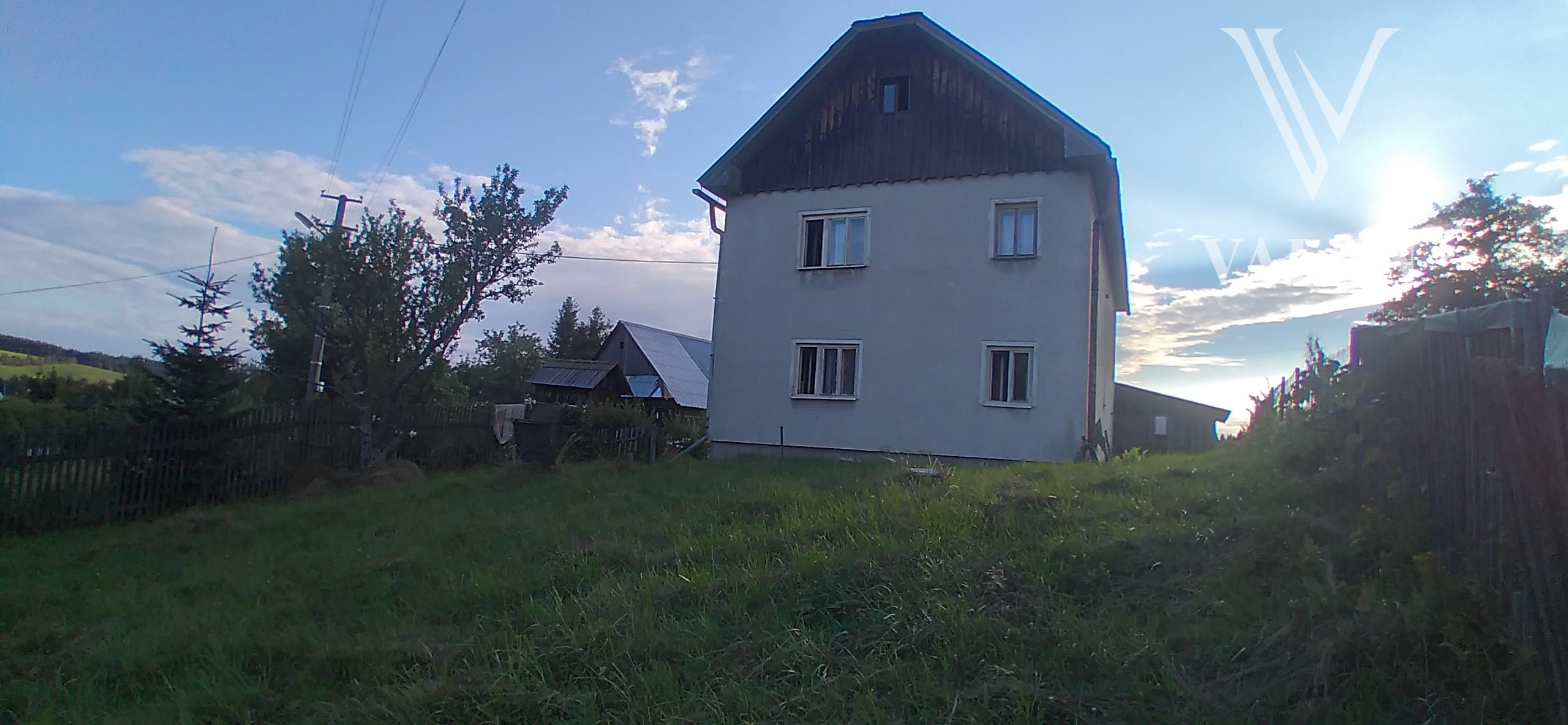 Dom: Dvojpodlažný rodinný murovaný dom je orientovaný na slnečnú južnú stranu s nádherným výhľadom na okolitú prírodu. Pozemok v celkovej výmere 3367 m² je oplotený a okrem rodinného domu sa na ňom nachádza drevený záhradný dom, senník, konica, udiareň a garáž.