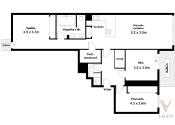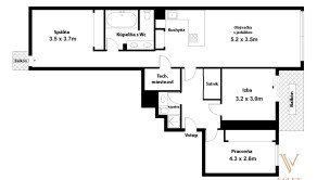 DISPOZÍCIA: Byt pozostáva z predsiene, dvoch nepriechodných izieb, kúpeľne s WC, šatníka, kuchyne spojenej s obývacou izbou a spálne s vlastnou kúpeľňou.